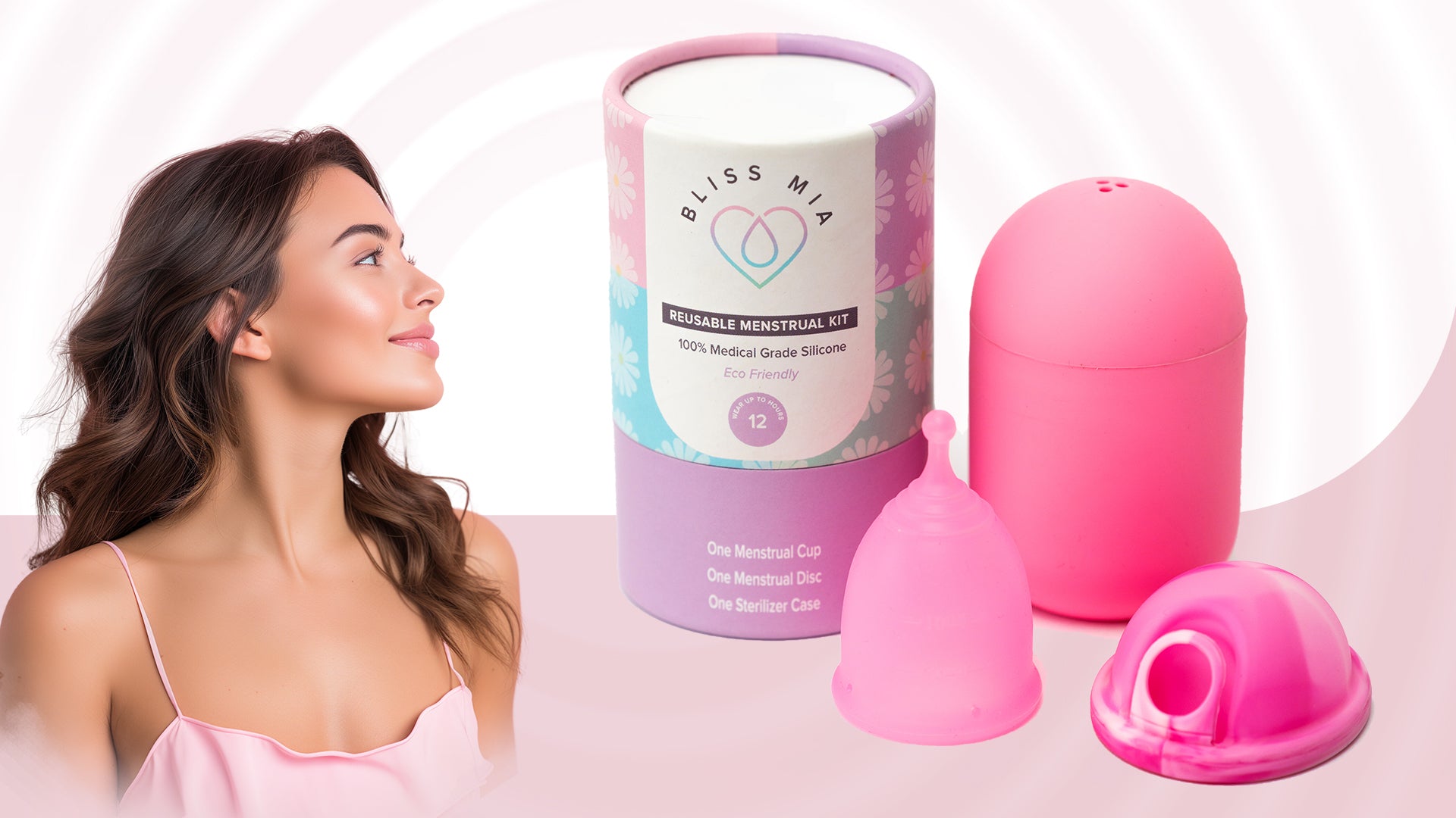 BlissMia Reusable Menstrual Cup & Disc Kit with Sterilizer Case Pink Size: Small